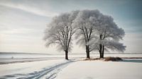 Altijd al digitale kunst van besneeuwde bomen als wanddecoratie willen hebben? Dan is dit een mooie illustratie voor aan de muur.