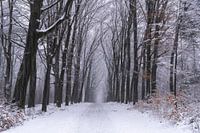 Deze foto is gemaakt bij Prattenburg nabij Veenendaal (Utrecht, Nederland). Een mooie boslaan, besneeuwd door de vele sneeuwbuien gaf een mooie sfeer. Nu een keer een lege boslaan tijdens een sneeuwbui.