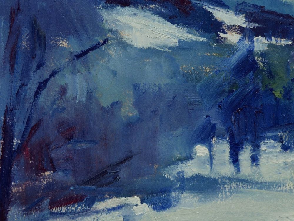 Een heuvel? Een dal? Het is de door het water uitgeslepen Krijtzee-bodem dat beekdalen herbergt met hellingen van löss, kiezel en kalksteen. Bossages, graften en graaslanden vormen het unieke Nederlandse landschap van Zuid Limburg. En als de sneeuw is gevallen en de lucht is nog grijs, kleurt het panorama voor me in blauwe tinten. Er staat een klein zuchtje wind, bomen zijn kaal in ruste, in de verte hoor ik de beek stromen en wat kraaien krassen. Voor de rest is het sereen en stil. Prachtig!