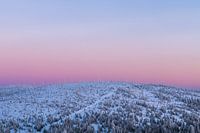 Besneeuwde heuvels in het zachte licht van het blauwe uur, Dreisessel, Beierse Woud, Duitsland