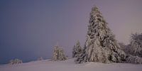 De foto is genomen op de Wasserkuppe in de Rhön. De bomen waren bedekt met sneeuw. Vooral de sparren zagen er erg fotogeniek uit. Omdat de zon al wat lager stond, had de lucht een bijzondere kleur gekregen.