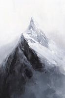 Een majestueuze piek rijst op uit de dichte muur van mist, zijn met sneeuw bedekte punt straalt koele grandeur uit. De contrasterende schaduwen en het zachte licht creëren een mystiek aura, terwijl de ruige, ongetemde natuur de rust van een onbedorven paradijs belichaamt. Hier ontmoet de mens de ongebreidelde kracht van de bergen.