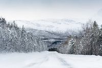 Een prachtige besneeuwde weg in Noors Lapland. Lapland of Samenland is de culturele regio die traditioneel wordt bewoond door de Samen (ook wel Lappen). Lapland ligt zo dicht bij de poolstreken, dat de winters er lang en ijzig koud zijn. In de wintermaanden komt de zon er niet op (poolnacht) en in de zomermaanden gaat de zon niet onder (middernachtzon). Noorwegen ligt op het westelijk deel van het Scandinavisch Schiereiland en grenst aan Zweden, Finland en Rusland.