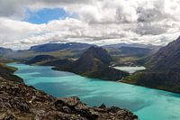 Uitzicht op het Gjende-meer in Noorwegen vanaf de Bessenggen-rug