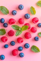 Te midden van een harmonieus kleurenpalet ontvouwen verse frambozen en bosbessen een uitnodigende charme. De levendige, sappige bessen, overgoten met een vleugje munt, voegen een fris, levendig accent toe aan elke kamer. Dit kunstwerk is een perfecte aanvulling in de keuken, waar het de eetlust voor heerlijke, gezonde snacks zal opwekken.
