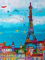 Vrolijk schilderij van de stad Parijs van de kunstenaar Renate Rolefes.