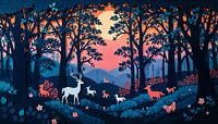 Betoverd Bos bij Zonsondergang van Retrotimes