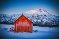 Breng de rustige pracht van Breivikeidet, in de omgeving van Tromsø, naar uw interieur met deze indrukwekkende foto. Het uitgestrekte landschap, met een charmante oude schuur op de voorgrond en majestueuze bergen op de achtergrond, creëert een sfeervol en rustgevend beeld. De unieke combinatie van een ruige natuurlijke omgeving met menselijke elementen maakt deze foto tot een perfecte keuze voor wanddecoratie.