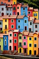 De gebouwen dragen een regenboog van vrolijke pastelkleuren, waardoor de omgeving een speelse en sprookjesachtige sfeer krijgt. Hoewel bijna realistisch, onthult de foto een betoverende illusie die de grenzen…
