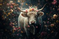 Betoverende Bloemenkroon - Koe in een Droom van Bloemen van Eva Lee