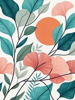 Betoverende Botanische Sereniteit bij Zonsondergang: Een levendige abstracte natuurstudie met weelderige groenbladeren en zachte roze bloemblaadjes van Artistic