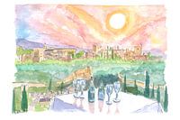 Over ‘Betoverende Grenada Andalusië namiddag met romantisch restaurant tafel’ van Markus Bleichner