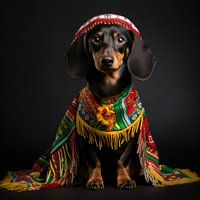 Betovering ontmoet viervoeters: teckels gehuld in traditionele Letse klederdracht. Voeg een unieke twist toe aan je ruimte.