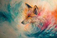 Deze fascinerende kunstafbeelding presenteert een vos op een unieke manier, omgeven door een kolkende zee van kleuren die van koel turquoise naar warm oranje overgaan. De details van het dier zijn prachtig weergegeven in een impressionistische stijl, waarbij elke penseelstreek bijdraagt aan een levendige en bijna dromerige interpretatie van deze sluwe bewoner van het bos. De afbeelding verbeeldt de essentie van beweging en natuurlijke gratie, en zou een boeiende toevoeging zijn aan elke ruimte die een vleugje wilde natuur en kunstzinnige inspiratie verlangt.