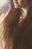 Deze foto vangt een betoverend moment van zomerse sereniteit, waarbij de warme stralen van de zon spelen met de dansende lokken van een vrouw. Tot de kin genomen, onthult de foto een glimp van haar gezicht, omlijst door weelderig wapperende haren die de zomerbries lijken te omarmen.