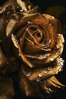Deze prachtige foto toont een luxueuze, gouden roos bedekt met fijne waterdruppels die het licht op een bijzondere manier vangen. De rijke tinten goud en bruin geven de bloem een warme, bijna magische uitstraling. Perfect voor liefhebbers van natuur en schoonheid, brengt deze afbeelding een vleugje elegantie in elk interieur. Het is een uniek stuk dat niet alleen de schoonheid van bloemen viert, maar ook de rustgevende kracht van water, waardoor het een ideale decoratie is voor zowel woon- als werkomgevingen.