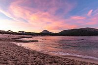 Koop de foto Betoverende rozige zonsondergang bij Cala Agulla van Joke Van Eeghem op canvas, aluminium dibond, (ingelijste) fotoprint, behang en ArtFrame, op maat geprint in Fine-Art kwaliteit.
