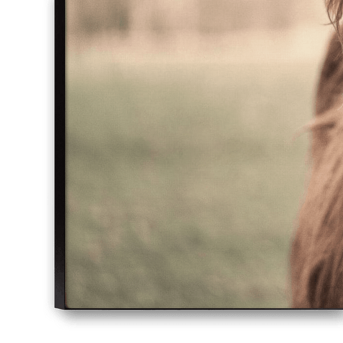 Betovering in Vacht toont een indrukwekkend portret van de majestueuze Schotse Hooglander, wiens wilde, golvende vacht en prominente hoorns het middelpunt van dit kunstwerk vormen. De zachte focus op de achtergrond accentueert de rijke, roodbruine tinten van zijn vacht en de krachtige textuur die bijna tastbaar lijkt. Zijn bedachtzame blik roept een gevoel van rust en wijsheid op, een serene uitnodiging om de ongerepte natuur en het robuuste dierlijke leven te waarderen. Dit fotografisch meesterwerk zou een sfeer van landelijke charme en natuurlijke pracht toevoegen aan elk interieur, ideaal voor liefhebbers van wildlife en landelijke esthetiek.