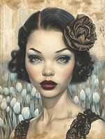 Een portret van een klassieke brunette, geïnspireerd op Betty Boop. Collage.