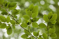 Beukenblad, een blad die het in ieder jaargetijde mooi doet om te fotograferen. In de lente een heldergroen blad met de nerven getekend. In de herfst een blad van goren naar geel en bruin. Altijd mooi. Zo'n foto is zeer geschikt om op behang af te laten drukken en een muur ermee te bekleden.
