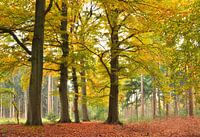 Een foto van beukenbomen in een bos. De bladeren beginnen al geel te worden vanwege de herfst. Foto gemaakt op de Lage Vuursche.