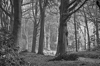Zwart-wit foto van een bos met oude beuken in de herfst. Foto is gemaakt op Landgoed Elswout in Noord-Holland.