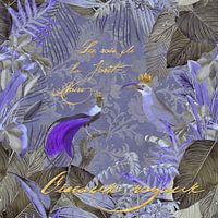 Nostalgische paradijsvogels met kroon in koninklijk viooltje in tropisch regenwoud