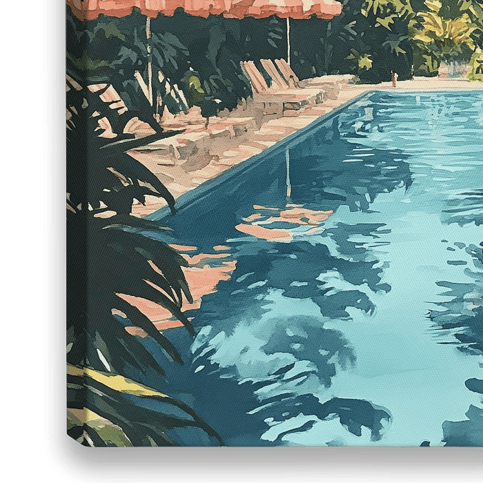 In dit kunstwerk wordt een zwembad in Beverly Hills tot leven gebracht in een mix van zomerse kleuren en tinten, die prachtig samensmelten en een zomerse sfeer oproepen.