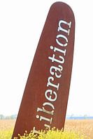 Bevrijdings monument in de weilanden nabij het dorp Elst met de tekst Liberation.