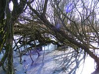 Bevroren natuurgebied de Haeck bij de Meije bij Nieuwkoop. Nieuwkoopse plassen. Wandelen langs bevroren ijs. Moerasgebied.