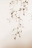 Mooi minimalistisch beeld van bevroren druppels op ragfijne steeltjes van grasjes.