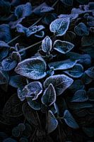 Let op, het is een macrofoto waarbij bewust is gekozen voor een beperkte scherpte om de details van een deel van de bladeren en ijskristallen nog beter te laten uitkomen.