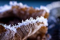 Na een aantal nachten vorst is deze paddenstoel versierd met ijskristallen.
