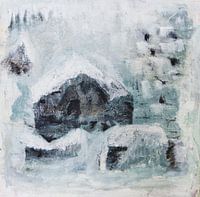 "Frozen Rocks and Ice" is een abstract kunstwerk geïnspireerd op december in Oekraïne. Dit kunstwerk heeft een koel palet van blauw, wit en zwart. In december wordt de grond harder, wat leidt tot de vorming van klonten, bekend als "груда". De scherpe randen en ruwe texturen van de rotsen dragen bij aan de algemene sfeer van het werk.