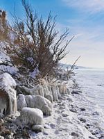 Oostzeestrand bedekt met ijs op de Darß bij Ahrenshoop.