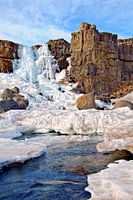 Bevroren waterval te Pingvellir in IJsland.
