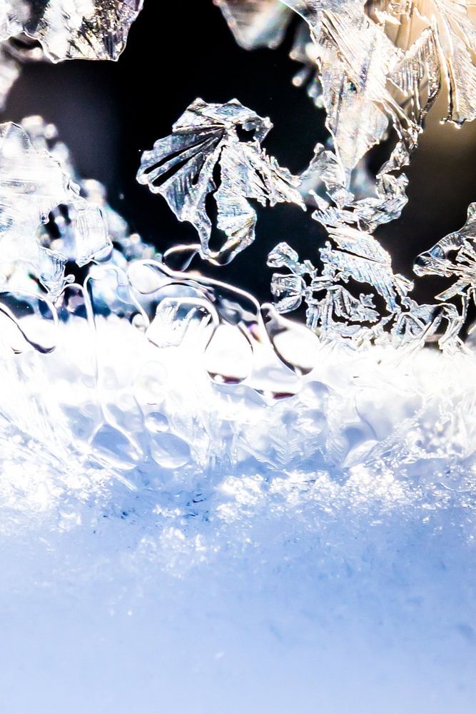 Bevroren zeepbel als macro-opname glinsterend in zonlicht.