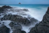 Bewegend zeewater met rots in landschap aan de kust van Lombok.