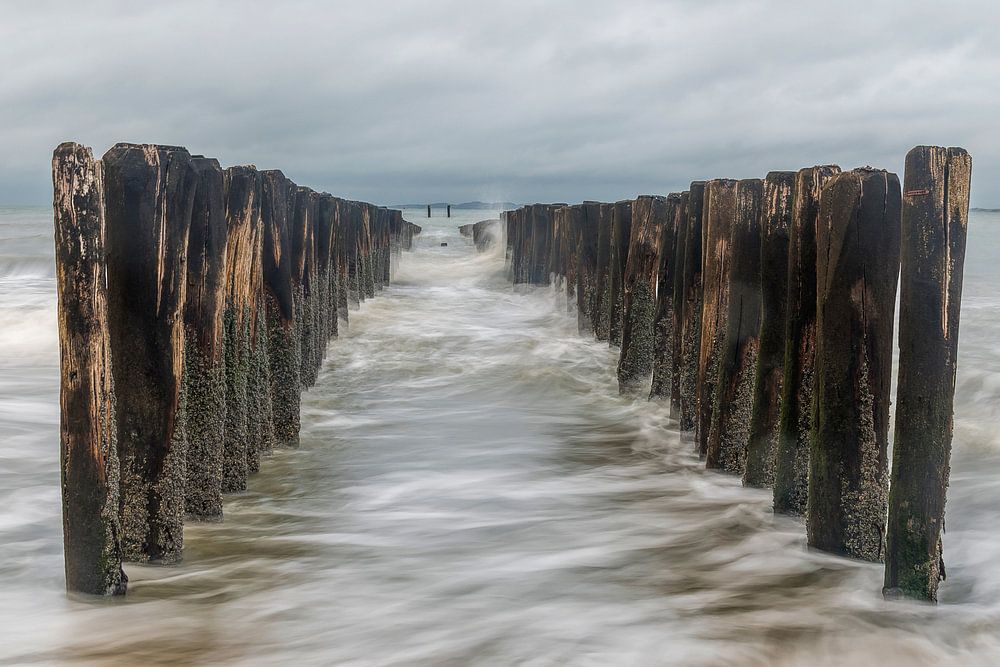 Bewust beweging van golven vastgelegd aan het strand in Breskens