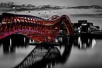 Foto van de Pythonbrug in het Oostelijk Havengebied van Amsterdam. De naam verwijst naar de kenmerkende golvende vorm, als een python in beweging.