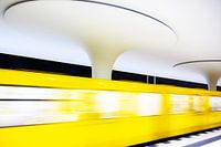 Langsrijdende gele metro in Berlijn. Lange sluitertijd.