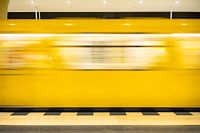 Langsrijdende gele metro in Berlijn. Lange sluitertijd.