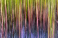 Door de camera te bewegen langs het riet ontstaat een mooi abstract kleurrijk beeld.