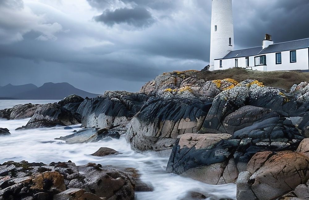 Avontuur in IJslandfernlichtsicht Vuurtoren bij zonsondergangfernlichtsicht