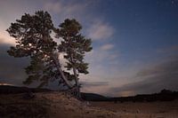 Bewolkte sterrenhemel si oude pijnboom op het zand in de siberische taiga bij baikal
