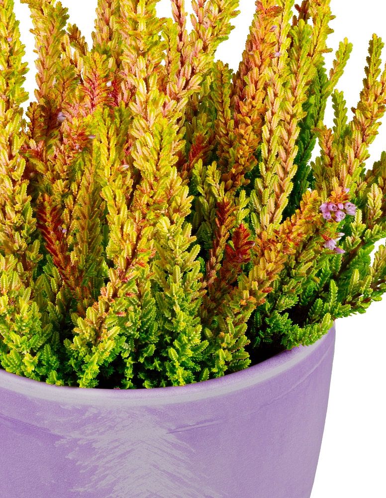 Bezemheide in een bloempot op een witte achtergrond