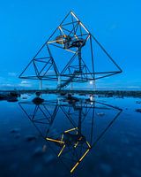 Blauw uur bij het oriëntatiepunt Tetraeder, Bottrop in het Ruhrgebied, Noordrijn-Westfalen, Duitsland