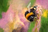 "Bezige Bij": In deze digitale bewerking komt de pracht van de natuur tot leven met een mix van fotografie en schildertechnieken. De levendige kleuren en de diepte-effecten geven een speels en levendig beeld.
