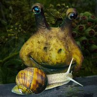 vreemdeling, vreemdeling, slak, slakkensoort, kindermotief, kinderkamer, fantasie, mystiek, science-fiction, reptiel, wijngaard, wijngaard, fantasie, magisch, sprookje, illustratie, collage, digitalart, van een andere ster, decoratief, inspiratie,
