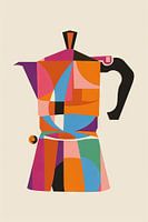 Dit dynamische kunstwerk toont een iconische Bialetti espressopot in levendige, geometrische kleurblokken. De gedurfde, contrasterende kleuren en strakke lijnen brengen energie en vreugde in elke kamer. Perfect voor moderne keukens en cafés, deze illustratie past naadloos in de hedendaagse inrichting en trekt ieders aandacht. Ideaal voor liefhebbers van pop-art en geometrische abstractie.